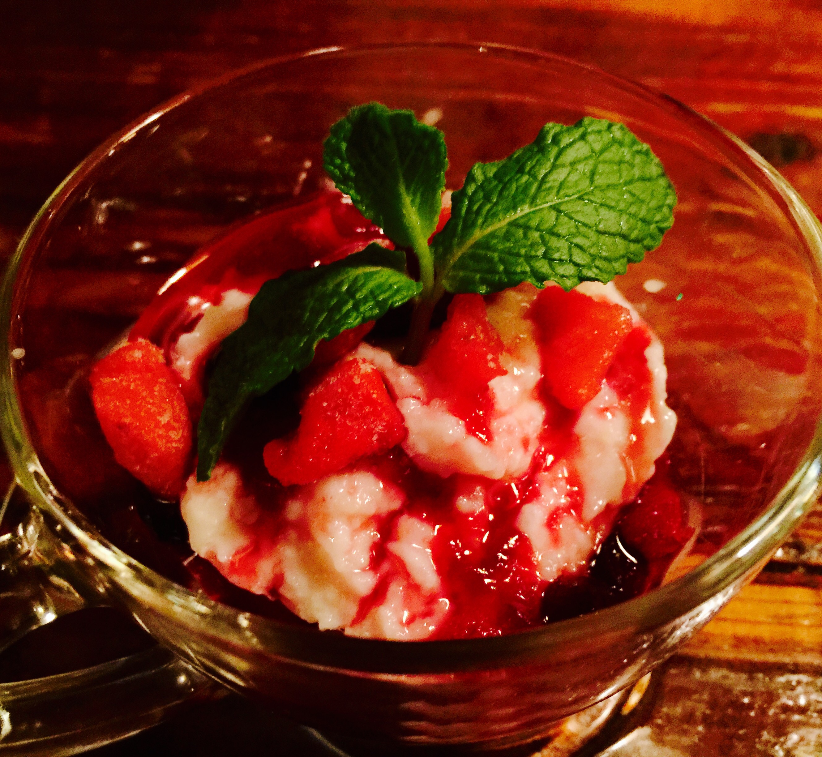 エルボラーチョ・ロスティ 高砂店 2015/04/16 エルボラーチョ、高砂 4月のオススメ!! エルボラーチョグループの今月のオススメは高砂店が担当しましたっ!! デザート 「レチェ・デ・フレサ」 メキシコで定番のお米と牛乳を使ったデザート、アロス・コン・レチェをアレンジしました。 もちっとトロッとした食感にベリーソースといちごをトッピング。 摩訶不思議な食感を楽しんで下さ〜い。 ドリンク 「メロコトン・セルベッサ」 ジューシーな桃のドリンクをビールで割りました。 桃の余韻が残る甘酸っぱいドリンクでーす!! « 前の記事 次の記事 »