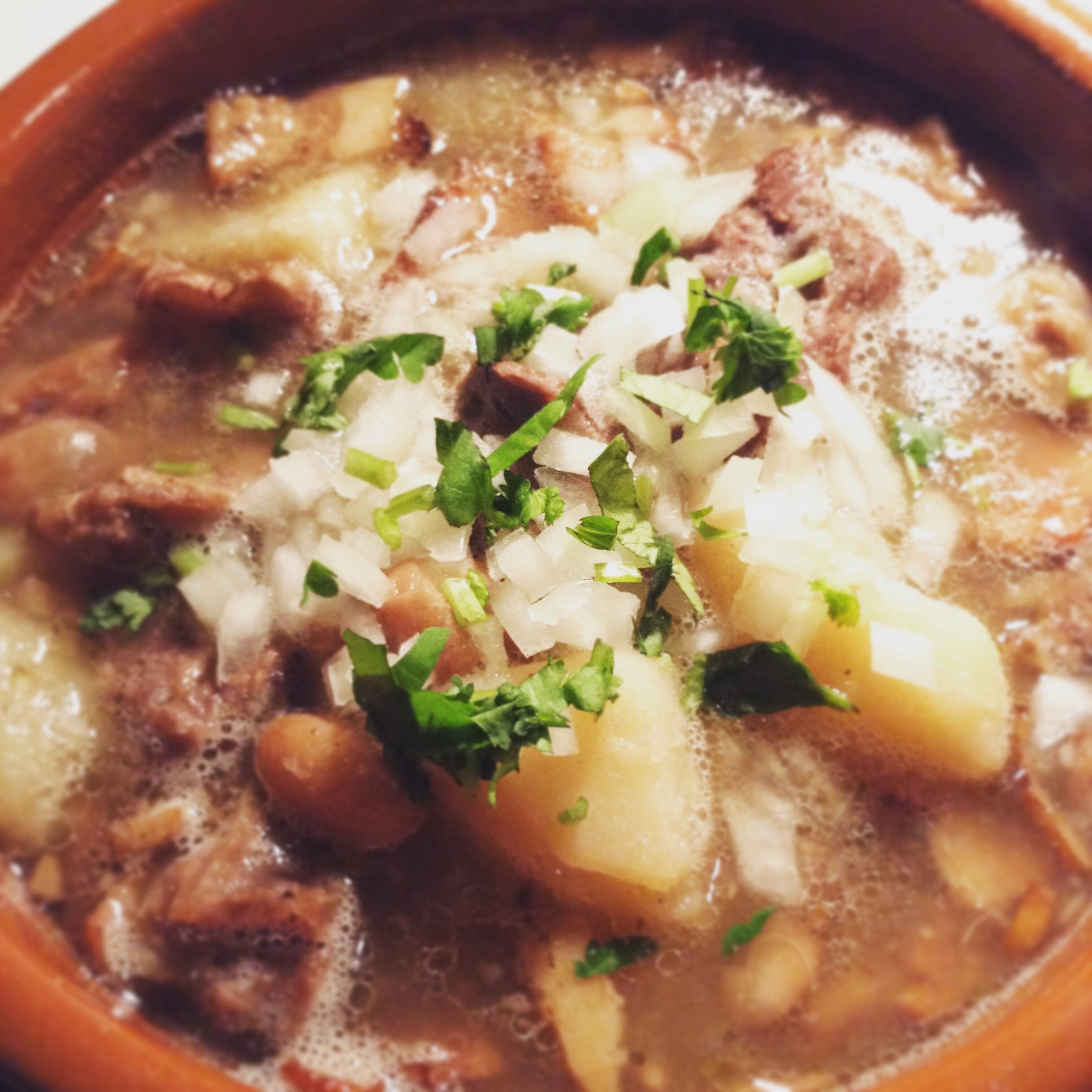 うずら豆と牛肉の中スジをじっくり煮込んだほっこり料理。