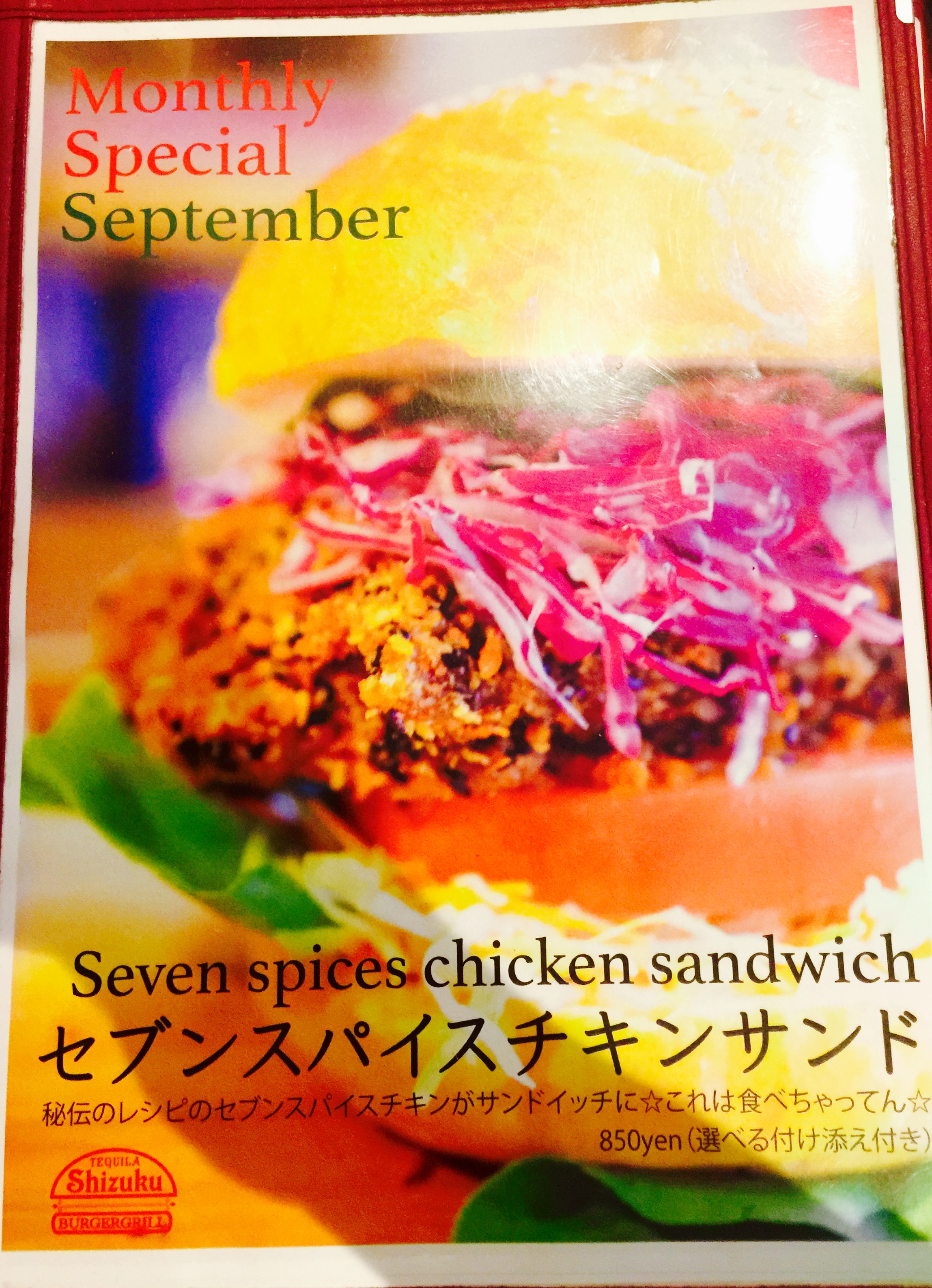 Shizuku バーガー グリル店 2016/09/16 ハンバーガー、大名、福岡、テキーラ、鶏料理 今月のスペシャルバーガー!! 今月のスペシャルバーガー!! 「セブンスパイスチキンバーガー」 Shizuku burgergrillで定番のおつまみ「セブンスパイスチキン」をハンバーガーに! 秘伝のセブンスパイスをまぶして揚げた鶏もも肉のハンバーガーです。 ジューシーで食べ応えあり♪(´ε` ) « 前の記事 次の記事 »